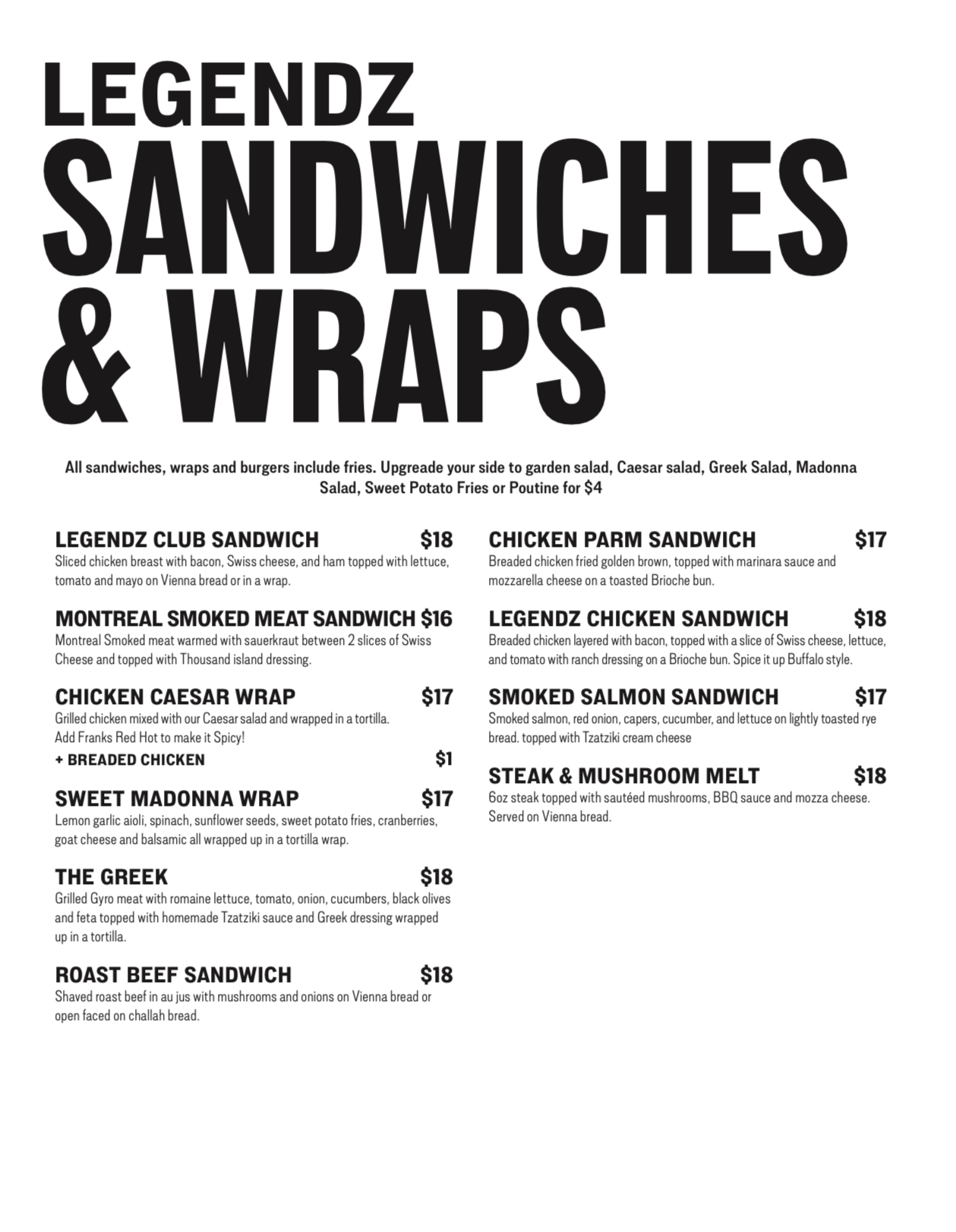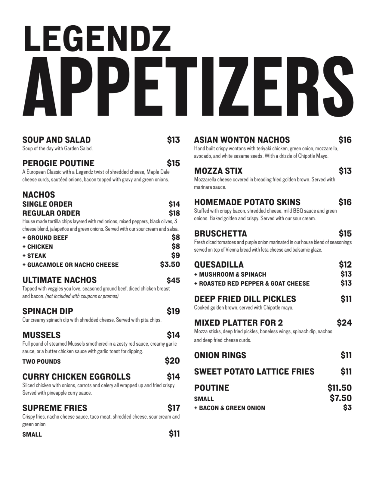 Sauces – mild, Medium, Hot, Suicide, Sweet Chili, Pineapple Curry, Jerk, Honey Garlic, Tequila Lime, Caddy ranch, Smokeshow, Garlic Parm